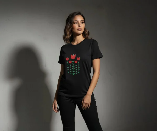 Esta camiseta con estampado de gatos no es como las demás. Nuestro diseño exclusivo presenta una composición artística donde los gatos y las flores se entrelazan en una escena llena de color y personalidad. Es la prenda perfecta para mostrar tu lado tierno y creativo, un diseño que seguramente te traerá sonrisas y cumplidos.
