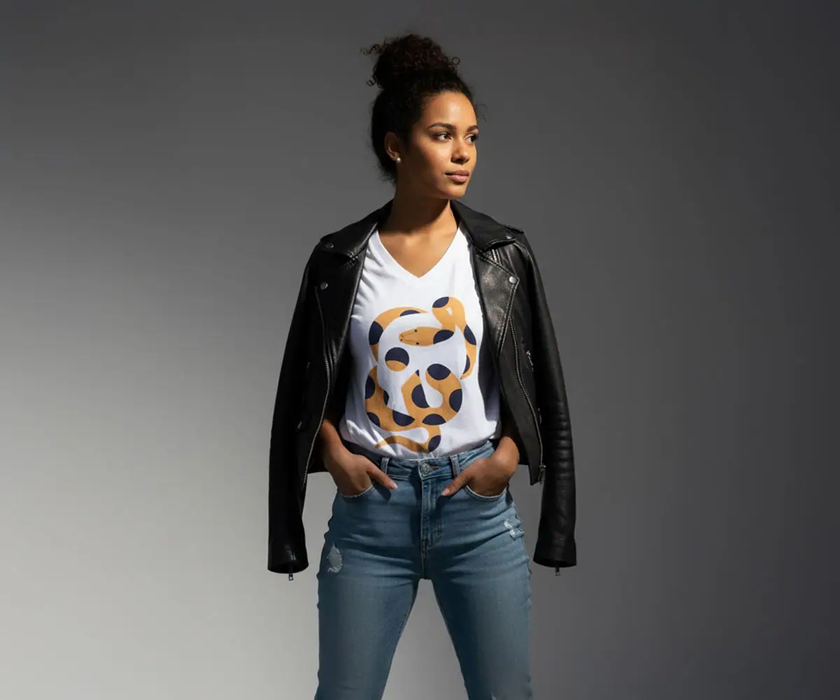 La serpiente, un emblema de renacimiento, poder y seducción, es la protagonista de este diseño exclusivo. Nuestro trazo artístico reinterpreta este poderoso ícono con un estilo moderno y minimalista, convirtiéndolo en el punto focal de tu look. Es la pieza perfecta para añadir un toque de carácter y sofisticación a tu estilo urbano.